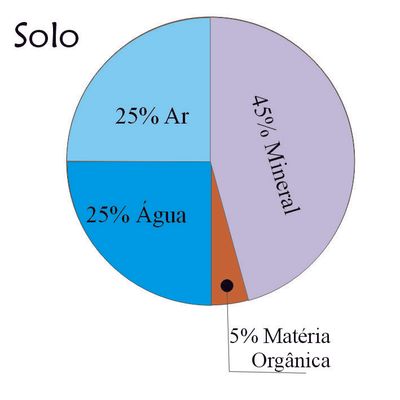O solo típico consiste em aproximadamente 45% de minerais, 5% de matéria orgânica, 20-30% de água e 20-30% de ar. Essas percentagens são apenas generalizações na melhor das hipóteses.